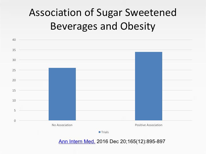напитками. При анализе всех испытаний, связывающих подслащенные напитки с ожирением,