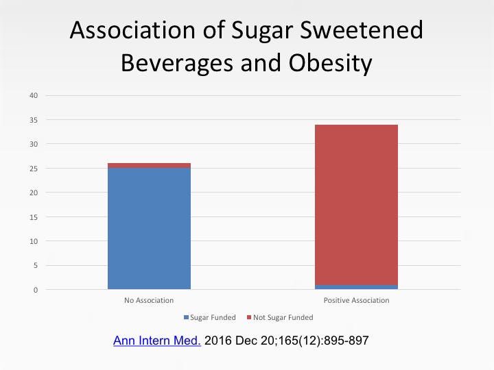 ожирением, только 1 исследование из 34 (2,9%) финансировалось сахарной